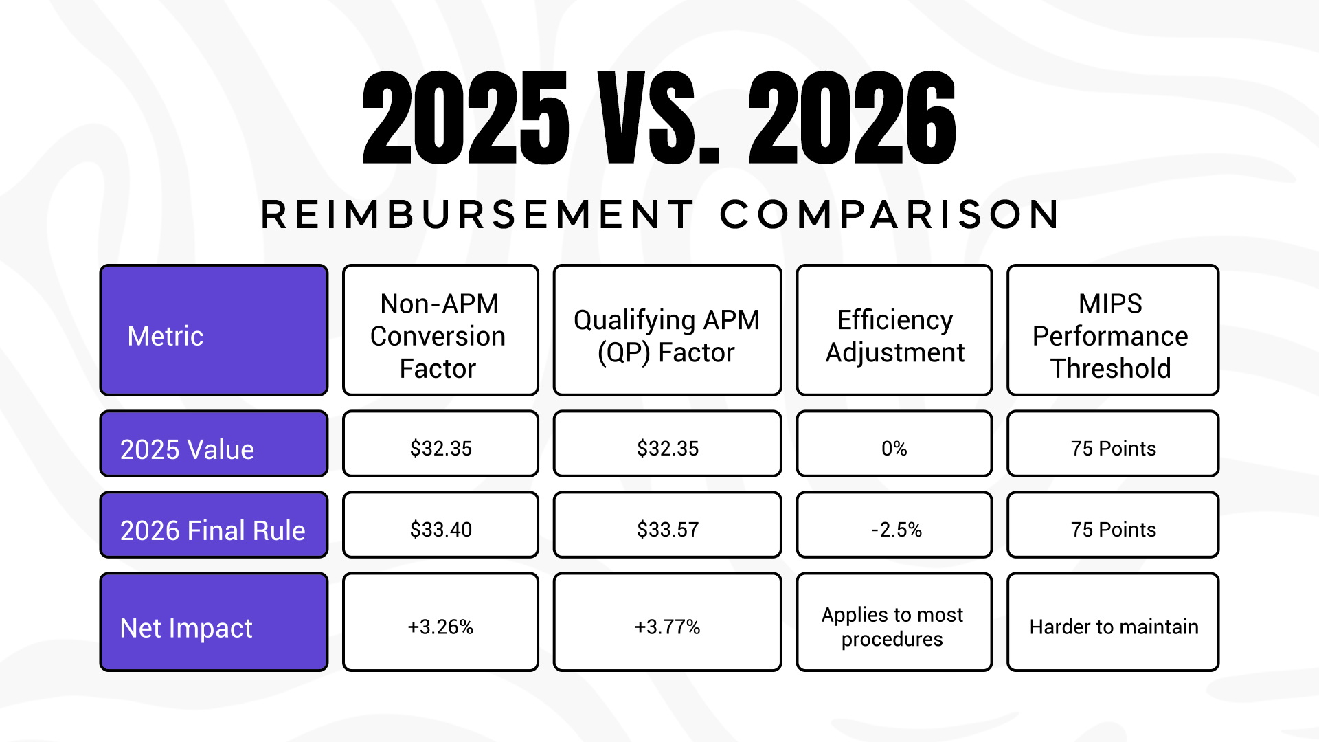 2. Review Your "Facility" vs "Non-Facility" Mix: If you perform procedures in a surgery center vs. your office, calculate the 2026 differential now to see where your margins are healthiest.