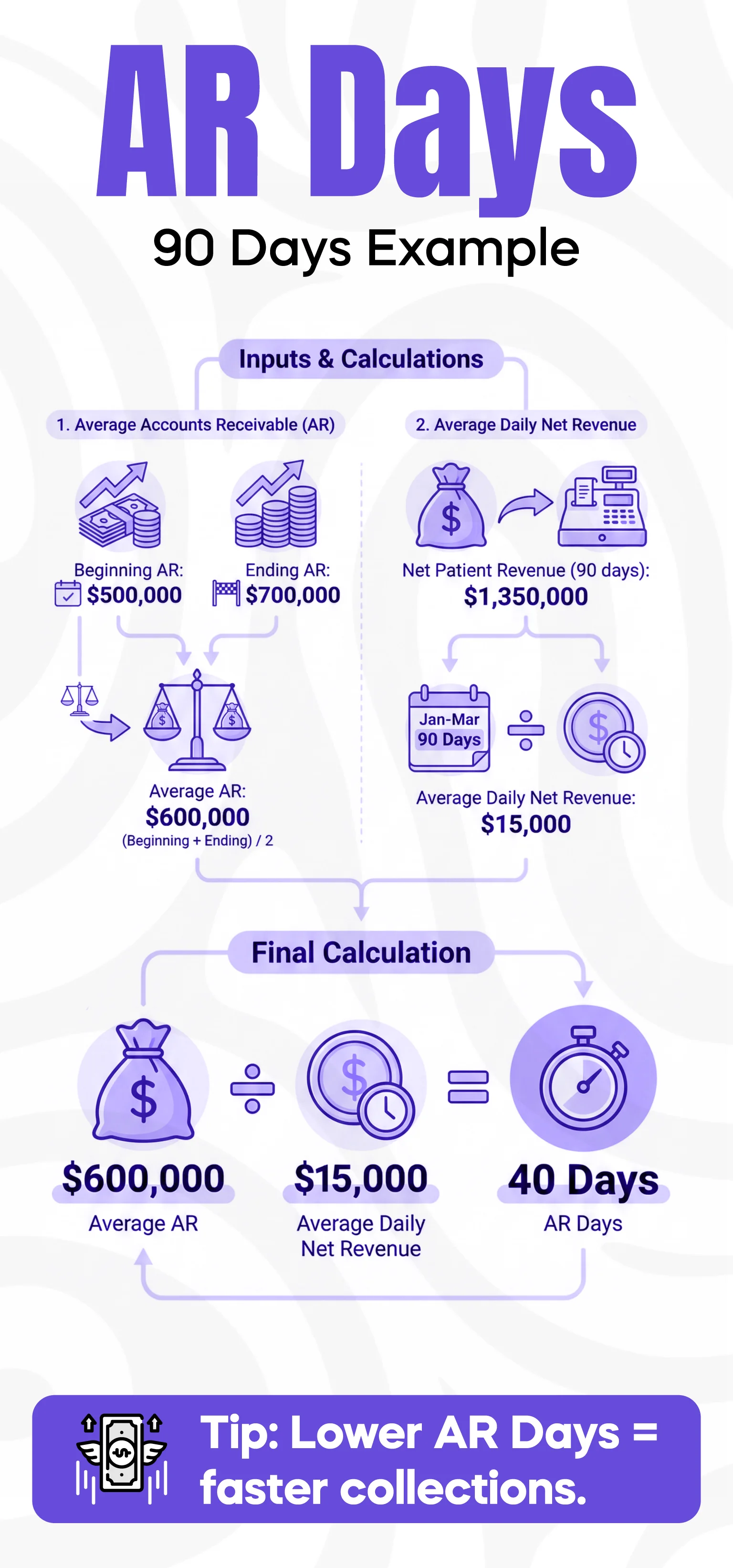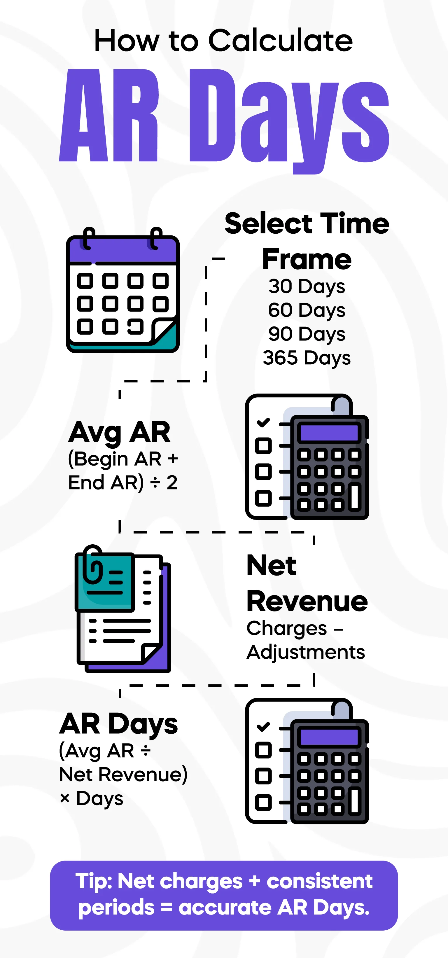 AR Days = Total AR ÷ Average Daily Net Charges.